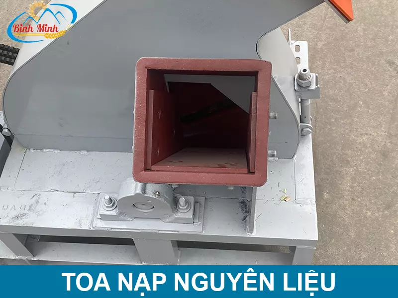 Toa nạp được thiết kế góc nghiêng giúp giảm tải khi đưa nguyên liệu vào buồng băm, phần toa nạp có chiều cao vừa tầm người dùng giúp người sử dụng dễ dàng đưa nguyên liệu vào băm.