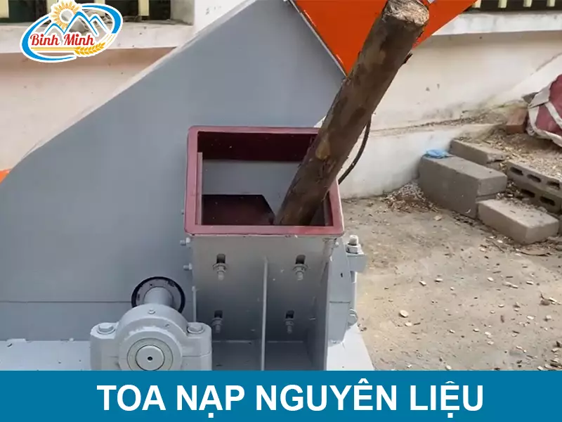 Toa nạp được thiết kế góc nghiêng giúp giảm tải khi đưa nguyên liệu vào buồng băm, phần toa nạp có chiều cao vừa tầm người dùng giúp người sử dụng dễ dàng đưa nguyên liệu vào băm.