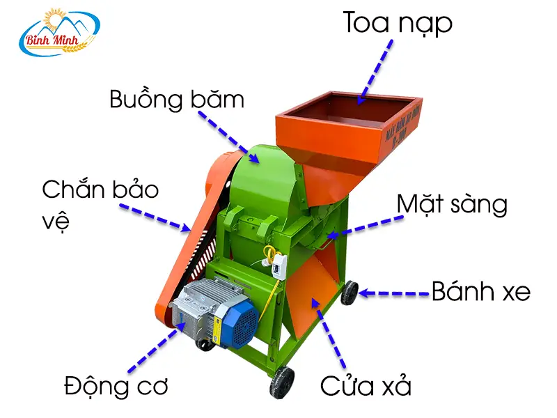 Phần toa nạp nguyên liệu được thiết kế dạng phễu to rộng với kích thước CD 36 * CR 36cm, giúp cho việc đưa nguyên liệu vào buồng băm một cách dễ dàng