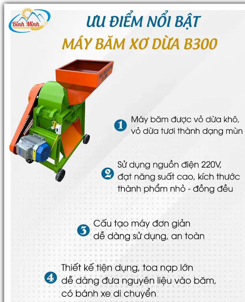 Ưu điểm nổi bật của máy băm xơ dừa B300