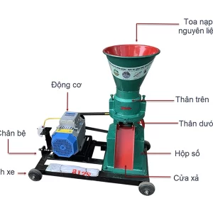 - Với cấu tạo đặc biệt máy có thể ép hỗn hợp nguyên liệu làm cám viên cho gà, vịt, lợn