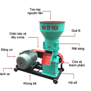 Thuộc dòng máy ép cám viên trục đứng, với thiết kế lớn phần khung máy làm bằng gang với từng mối hàn chắc chắn không gây rung lắc trong quá trình hoạt động
