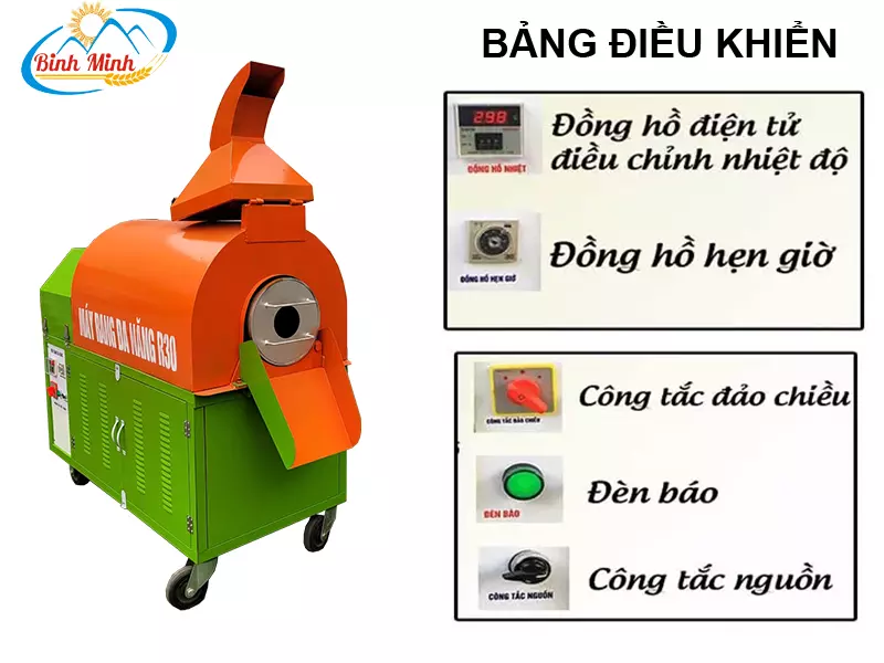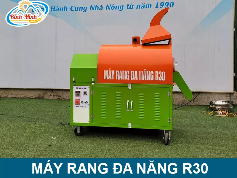 Máy rang hạt đa năng R30 là thiết bị do Công ty Bình Minh chế tạo và sản xuất ra với thiết kế đẹp mắt, có chức năng rang đa dạng các loại nguyên liệu như: hướng dương, lạc, đỗ, macca….một cách nhanh chóng.