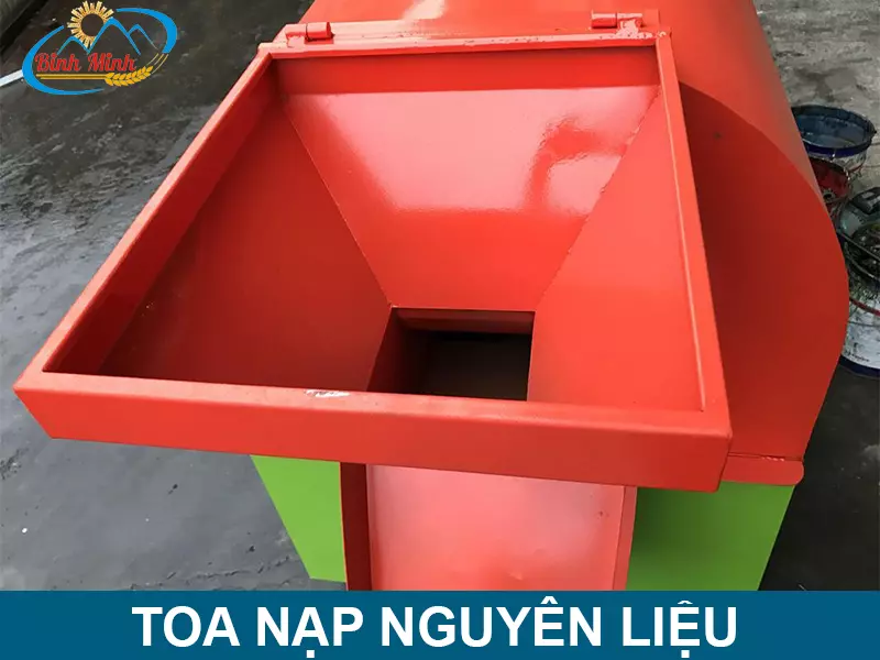 Toa nạp nguyên liệu thiết kế dạng phễu có kích thước 35x35cm, nhờ đó người dùng dễ dàng đưa nguyên liệu vào lồng rang một cách nhanh chóng.